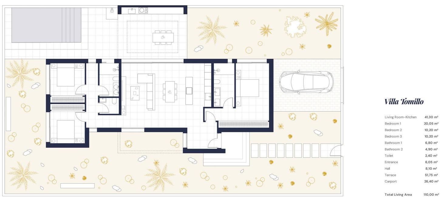 NEW BUILD VILLAS IN ALTAONA GOLF RESORT, MURCIANew Build an extraordinary development of villas nestled within the beautiful Altaona Resort in Murcia. This exclusive enclave provides an ideal setting for experiencing the seamless fusion of luxury living and the tranquil Mediterranean lifestyle.Feel how the landscape enters the home through the large windows. The garden acquires a great presence and forms part of the very essence of the villa. Inside they are spacious and light, designed to let the Mediterranean light flood through their rooms.New Build villas with open plan kitchen, 3 bedrooms, 2 bathrooms, guest toilet, terrace, private garden with pool and parking space.Features:• The properties have Energy Certificate Rating A.• Ducted air conditioning installation with heat pump. Throughout the house except for bathrooms.• Electric underfloor heating in the living room and bathrooms with individual thermostat per zone.• Air renewal system in the kitchen, bathrooms, laundry room, and guest toilet.• Kitchen Includes extractor hood and electric induction hob with 3 cooking points.• Includes LED lighting in the living room, hallway, and exterior. The rest of the rooms are prepared for the future owner to install their lighting.• USB sockets in all bedrooms.• Electronic intercom for access from the exterior to the interior path. Doorbell at the property entrance.• Home automation system with two smart switches.• Private landscaped garden with drip irrigation system and the pool.• Exterior fencing of the urbanisation.• Vehicle access gates to the urbanisation: Metal sliding gate with remote opening system.Residential located in Altaona Golf just 15 minutes by car from the centre of Murcia capital and 20 minutes from the beaches you can enjoy the tranquillity and security offered by the Golf Course that has 18 holes and the comfort to live close to all services.Murcias airport Corvera only 15 minutes drive away.