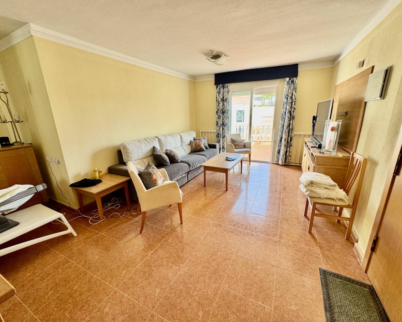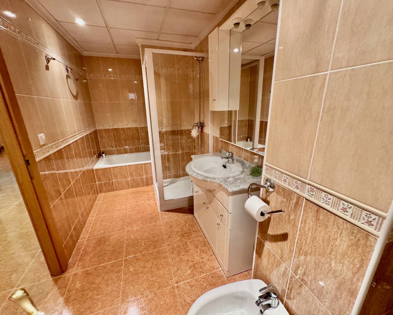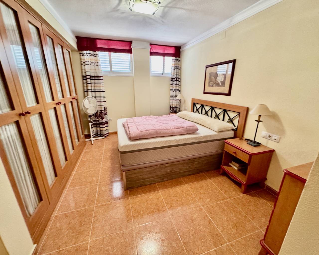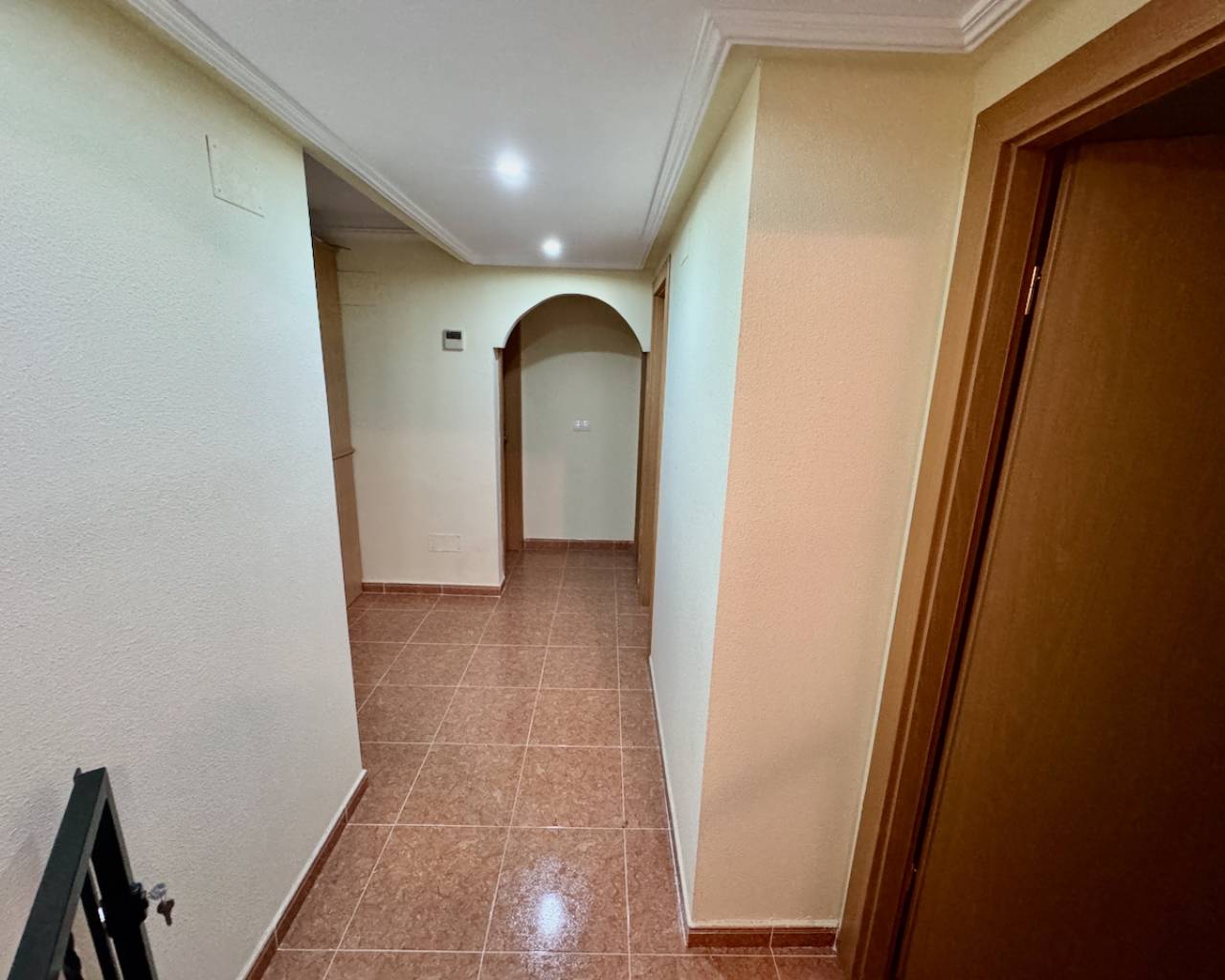 Flooded with natural light thanks to its south-facing orientation, the apartment offers a warm and inviting atmosphere throughout the day. On the first floor, an open-plan living and dining area flows seamlessly onto a generous private terrace with pool views—perfect for relaxing or entertaining. A full bathroom is also located on this level. All five bedrooms are situated on the lower floor, providing privacy and tranquility, while residents can also enjoy the communal pool and rooftop solarium.