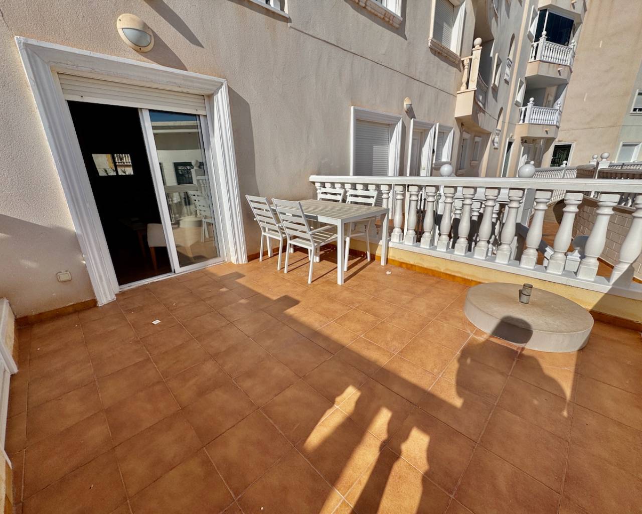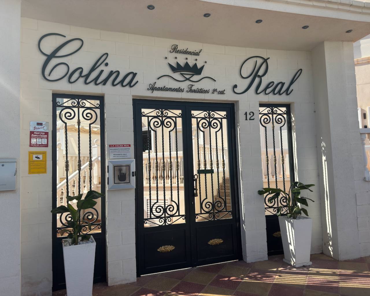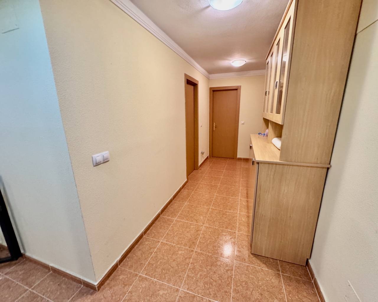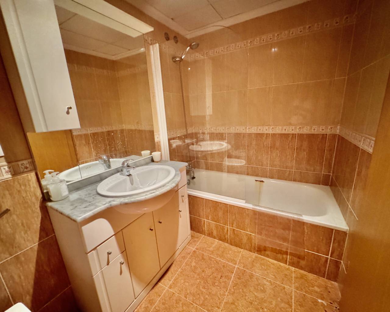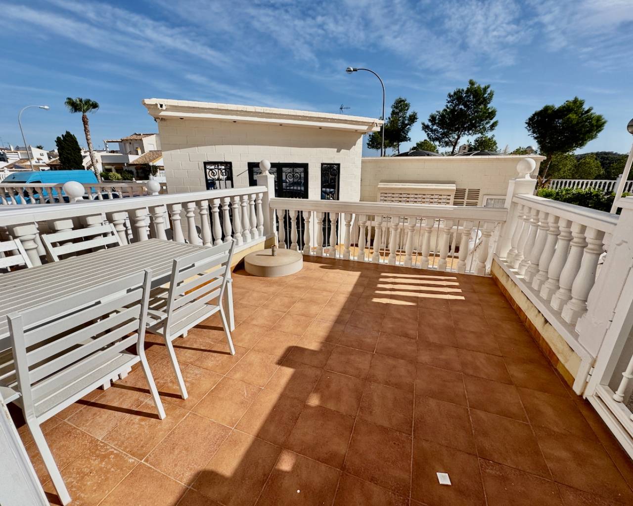 Flooded with natural light thanks to its south-facing orientation, the apartment offers a warm and inviting atmosphere throughout the day. On the first floor, an open-plan living and dining area flows seamlessly onto a generous private terrace with pool views—perfect for relaxing or entertaining. A full bathroom is also located on this level. All five bedrooms are situated on the lower floor, providing privacy and tranquility, while residents can also enjoy the communal pool and rooftop solarium.
