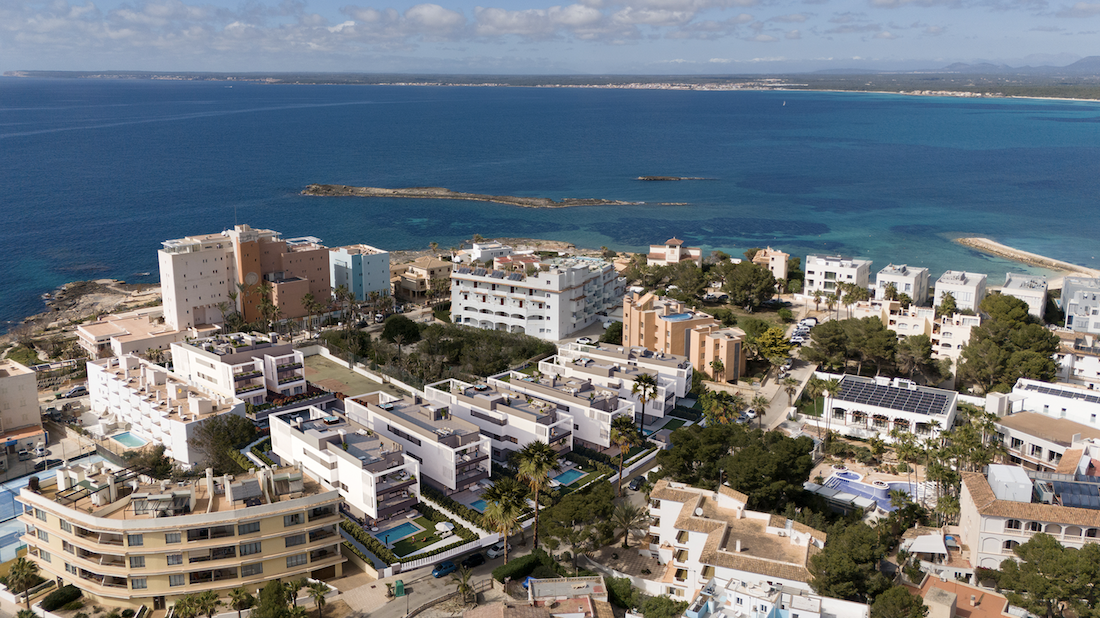 Penthouse apartment with rooftop solarium for sale in Colonia San Jordi on the beautiful southeast coast of Mallorca. This property is found in a development to be completed during the last quarter of 2026, the handover of the keys being scheduled for November 30th, 2026. Fall in love with this new residential complex just 100 metres from the Mediterranean Sea, 300 metres from the beaches Els Estanys and Es Trenc, and next to the Salinas de S’Avall. Its comunal areas include a swimming pool, jacuzzi, sun loungers, beach-pool, etc.