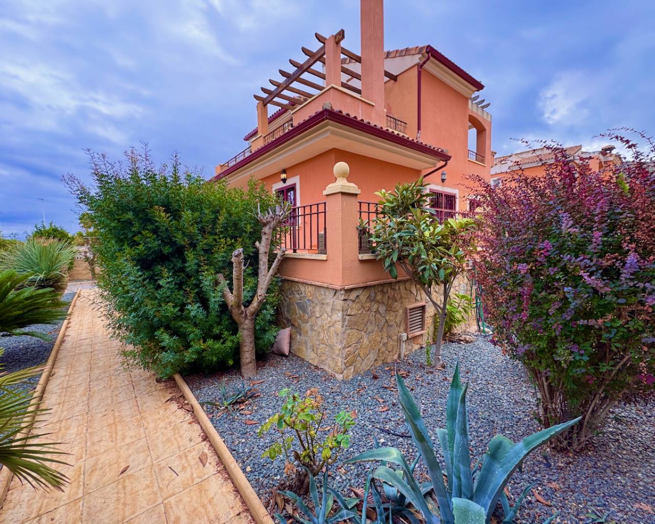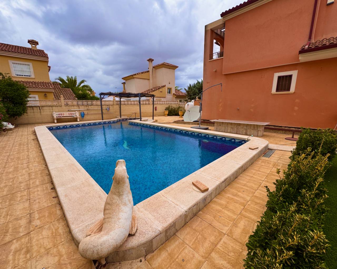 Elegant 3-Bedroom Villa with Private Pool & Mountain Views Built in 2008, this beautifully maintained villa strikes the perfect balance of comfort, style, and convenience. Offering 160m² of interior space, a charming landscaped garden, and a private pool, it’s ideal for both year-round living and holiday escapes. On the ground floor, a bright open-plan living and dining area with a cozy fireplace opens directly onto the terrace—perfect for entertaining or relaxing outdoors. The fully fitted kitchen includes a utility room with back-door access to the pool area. This level also offers a comfortable guest bedroom and a modern shower room. Upstairs, there are two generous double bedrooms, each with its own private patio. The master suite features an en-suite bathroom, while a spacious family bathroom with bathtub completes the floor. The villa also boasts a large underbuild with ample storage and internal access to the garage, providing excellent functionality. Key Features 3 spacious bedrooms with fitted wardrobes (master with en suite) 3 modern bathrooms, including a ground-floor shower room and a family bath Bright living & dining area with fireplace and terrace access Separate, fully equipped kitchen with utility room Private pool with stunning mountain and pool views West-facing terraces for outdoor dining and sunsets Underbuild & large storeroom for flexible use Air conditioning, central heating & ceiling fans throughout Additional Amenities Secure gated entry and private access Garage for 3 cars plus off-road parking Fully furnished – move-in ready Location Highlights 30 minutes to the beach 40 minutes to the airport 10 minutes to local shops and services 20 minutes to renowned golf courses