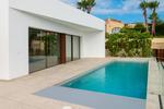 Luxury Modern Villa for Sale in Calpe, Costa Blanca – Just 1.5 km from La Fustera BeachContemporary Design in a Prime Coastal LocationThis exceptional modern villa, newly built and key ready, is located on the beautiful coast of Benissa, between the charming towns of Calpe and Moraira (Costa Blanca, Alicante). Positioned just 1.5 km from La Fustera Beach, one of the area’s most prestigious Blue Flag beaches, this home combines architectural elegance, high-quality materials, and advanced energy efficiency to deliver the perfect Mediterranean lifestyle.Spacious Layout with Luxury FinishesThe villa is distributed over two floors designed for maximum comfort and functionality.On the ground floor, you will find a large garage for two cars, a guest toilet, a laundry room, a spa or leisure area, and a double bedroom with an en-suite bathroom and dressing room. Internal stairs lead to the upper level.The upper floor features a welcoming entrance hall and a contemporary open-plan kitchen fully equipped with premium appliances, including double fridge-freezers, oven, microwave, dishwasher, and induction hob with built-in extractor. The bright living-dining area opens onto the main terrace with its spectacular private pool and sunbathing area. The sleeping area includes three bedrooms, one with an en-suite bathroom, plus a shared bathroom. All bedrooms have direct access to the pool terrace.High-End FeaturesThis property includes top-quality materials and energy-efficient systems for year-round comfort:Ducted air conditioning with individual thermostatsUnderfloor heating with heat pumpAerothermal domestic hot water systemPre-installation for alarm systemAluminum windows with thermal bridge break and low-emissivity glassMotorized blinds in bedroomsPhotovoltaic installation for energy savingsHeated pool with automatic cover and LED lightingDomotic controls for lighting and climate managementSpa and leisure area with pre-installation for jacuzzi, bar, and home cinemaLandscaped low-maintenance gardenPrime Location Between Calpe and MorairaSituated in one of the most sought-after residential areas of the Costa Blanca, the villa enjoys proximity to both the sea and the mountains. The area offers a wide selection of beaches, coves, restaurants, and leisure options, all within a short distance.Distances to Key Points of InterestLa Fustera Beach: 1.5 kmLes Basetes Yacht Club: 2 kmCalpe: 6 kmMoraira: 8 kmAltea Golf Club: 12 kmAlicante International Airport: 85 kmLive the Mediterranean DreamThis luxurious modern villa in Calpe offers a perfect blend of style, comfort, and location. Contact us today to arrange a visit and discover your new life on the Costa Blanca.