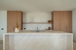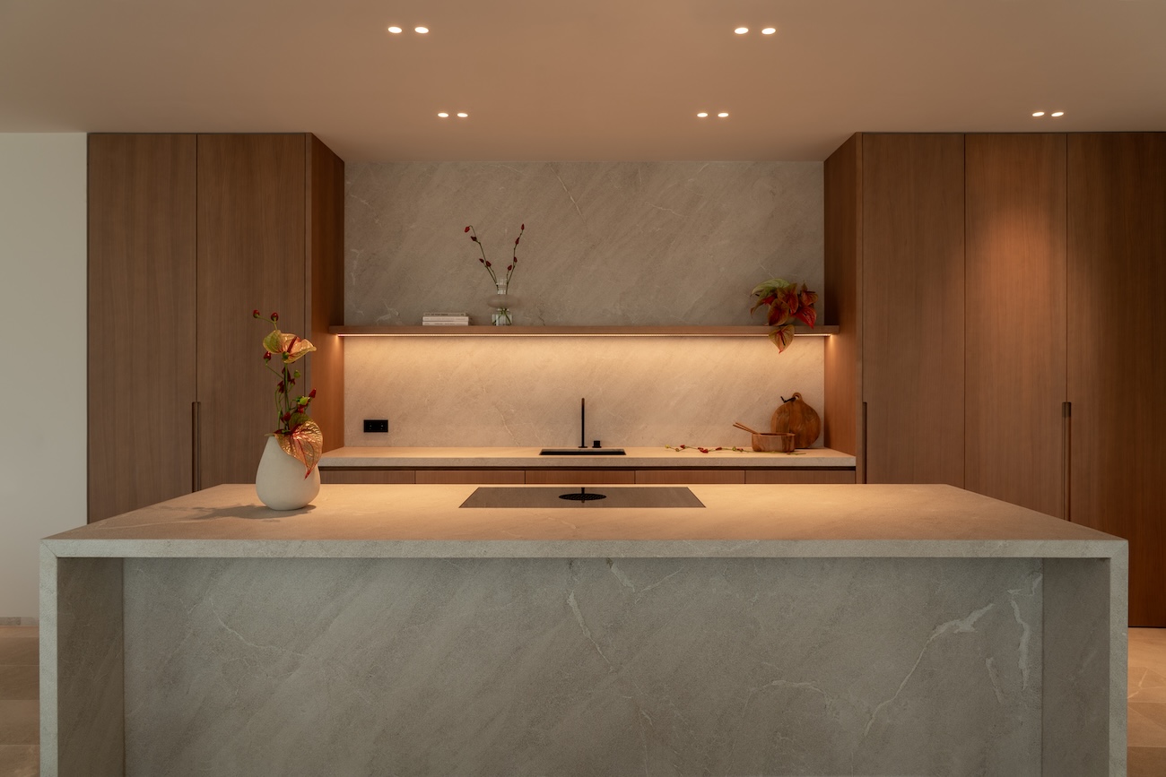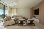 It features four bedrooms with en-suite bathrooms and an additional guest bathroom, providing a comfortable and private retreat for family and guests. The open-plan layout, abundant natural light, and high-quality stone floors create an elegant and inviting atmosphere. Underfloor heating, air conditioning, and a fireplace ensure cozy warmth and maximum comfort throughout the year.