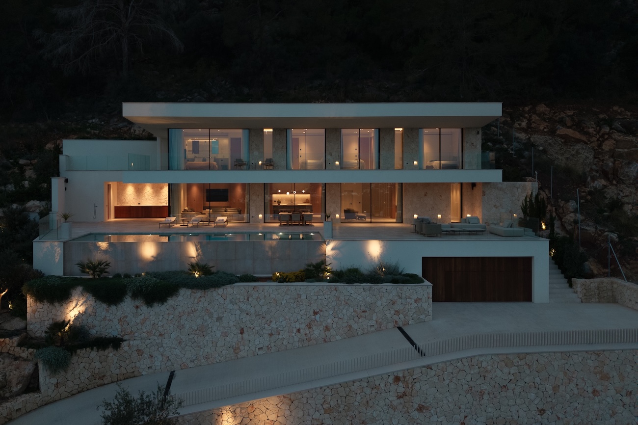 This exclusive newly built luxury villa in Sa Font Seca was recently completed and offers stunning panoramic views. Set on a generous plot of approximately 1,300 m2, the villa spans 966 m2 of built area, combining modern comfort with stylish design.