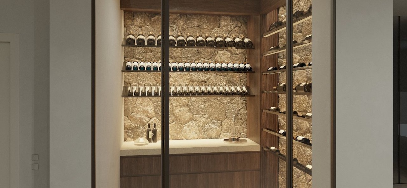 The villa features four elegant bedrooms and four luxurious bathrooms, complemented by high-quality designer furniture and a stylish fireplace that creates a warm and sophisticated atmosphere. Thanks to its south-east orientation, the property enjoys abundant natural light throughout the day.