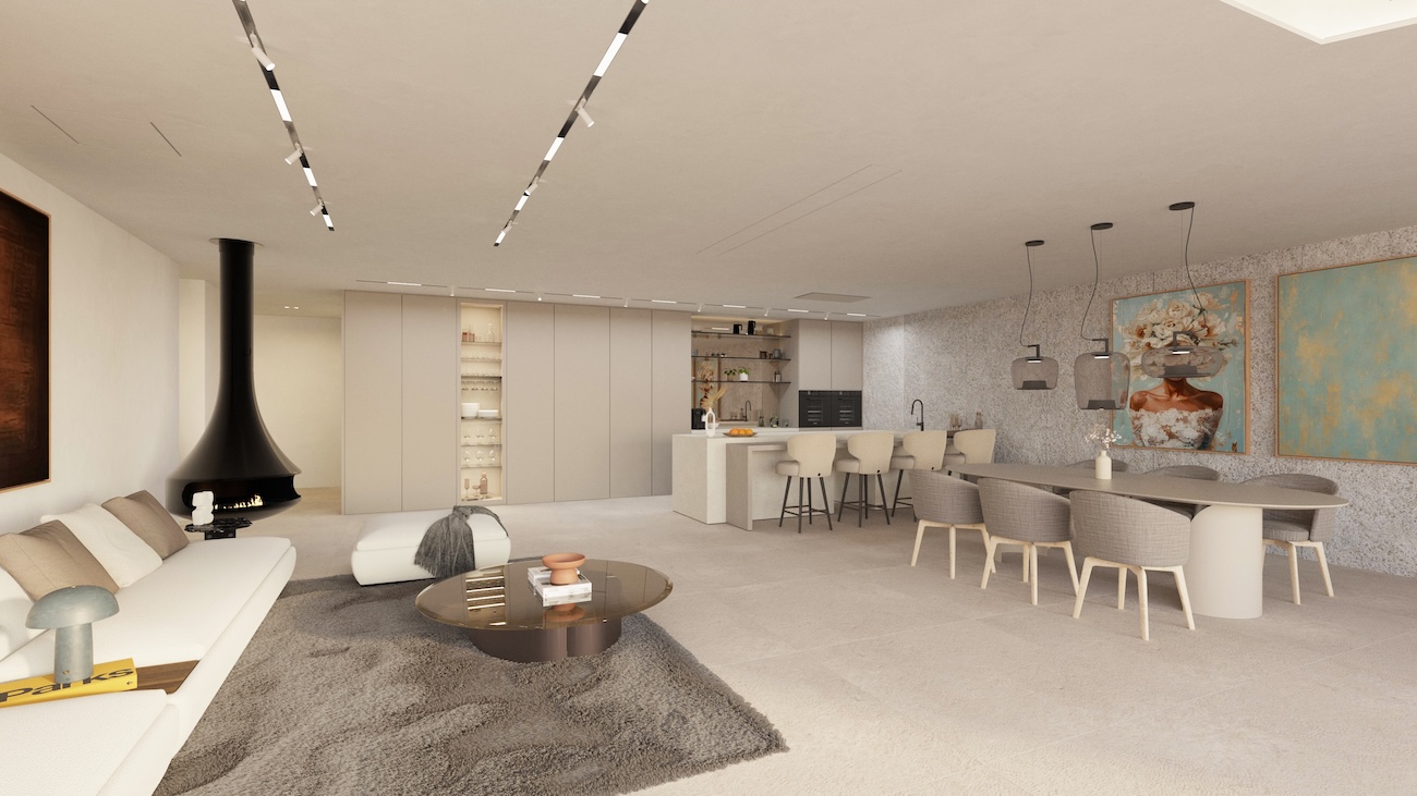 The villa offers 4 elegant bedrooms and 4 high-end bathrooms, perfect for families or guests. Equipped with the latest home technology and designed for energy efficiency, it ensures comfort and sustainability. For your well-being, air conditioning and pre-installation for a gym, sauna, and wine cellar are already included.