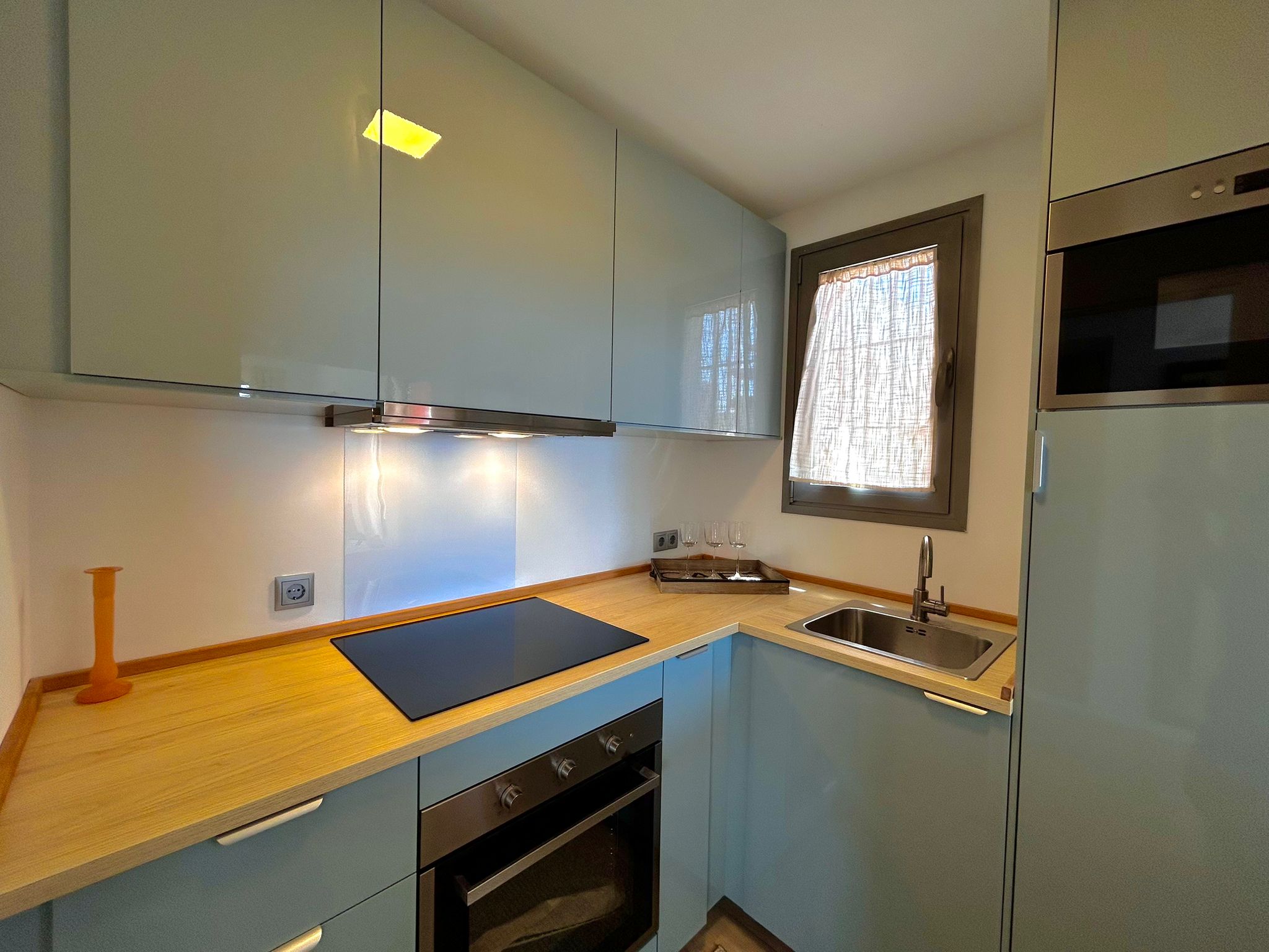 With a built area of 60 m2, the apartment comprises a bright living-dining area, a fully equipped modern kitchen, a spacious bathroom, a large bedroom with dressing room, an attic space open to the living room, adding character and volume. A private storage room is included in the price.
