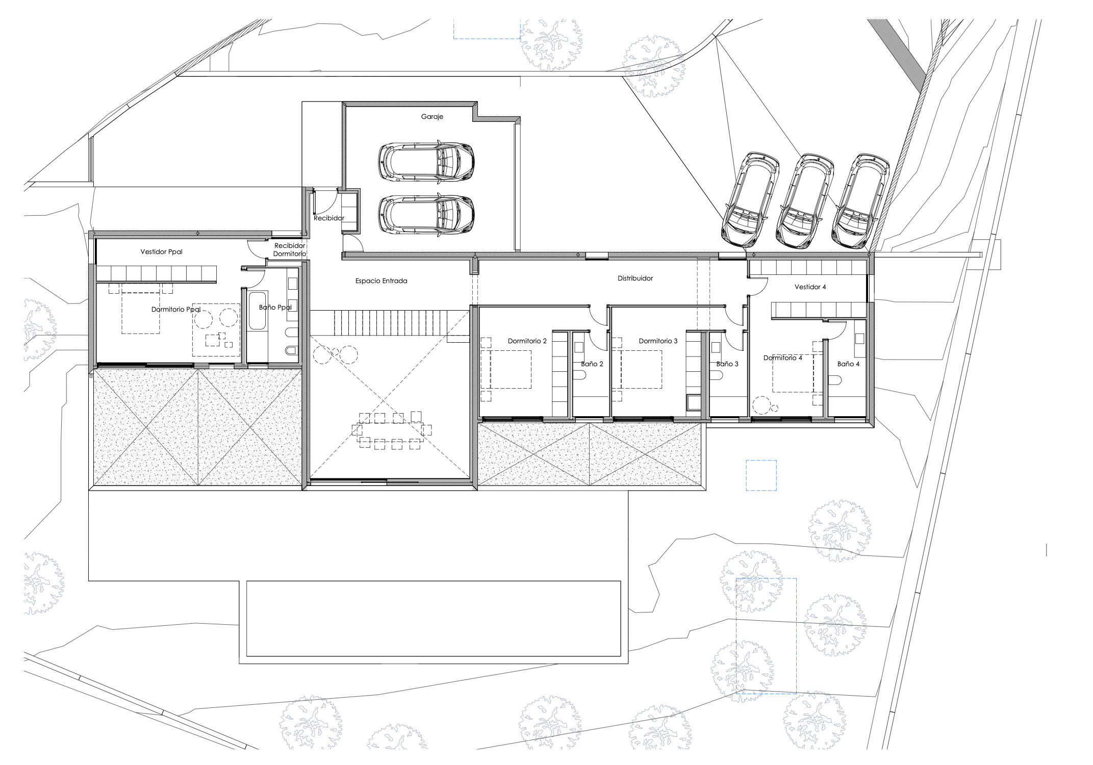 All bedrooms are en suite and include walk-in wardrobes. They are situated on the first floor, with direct access to the terrace on this level, providing a seamless indoor-outdoor living experience.