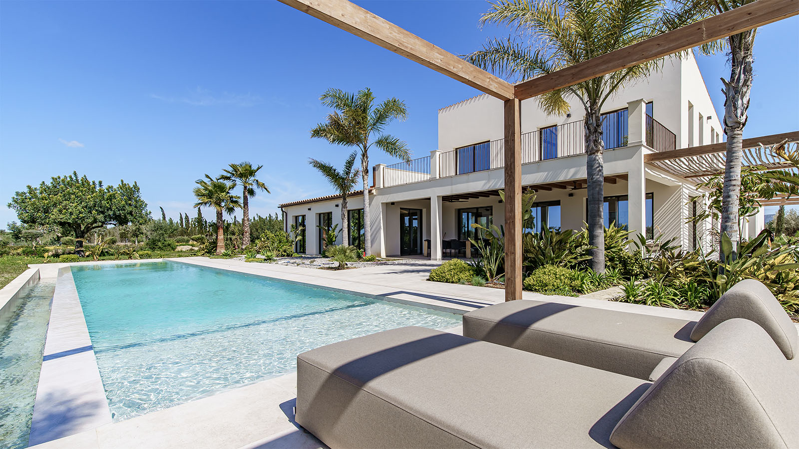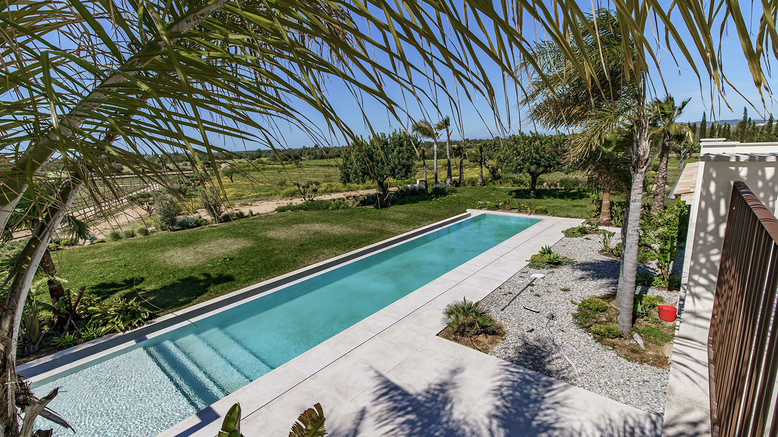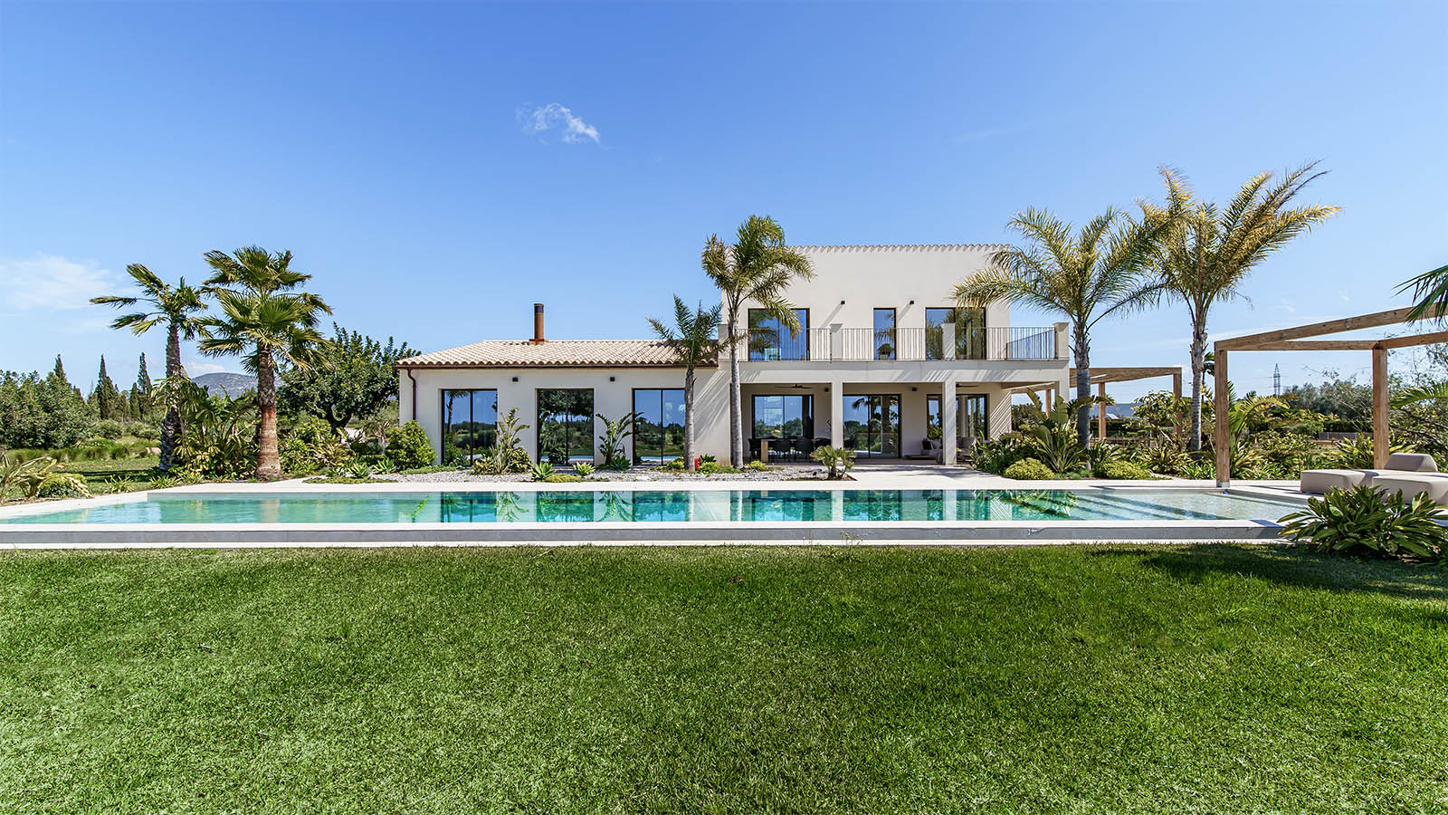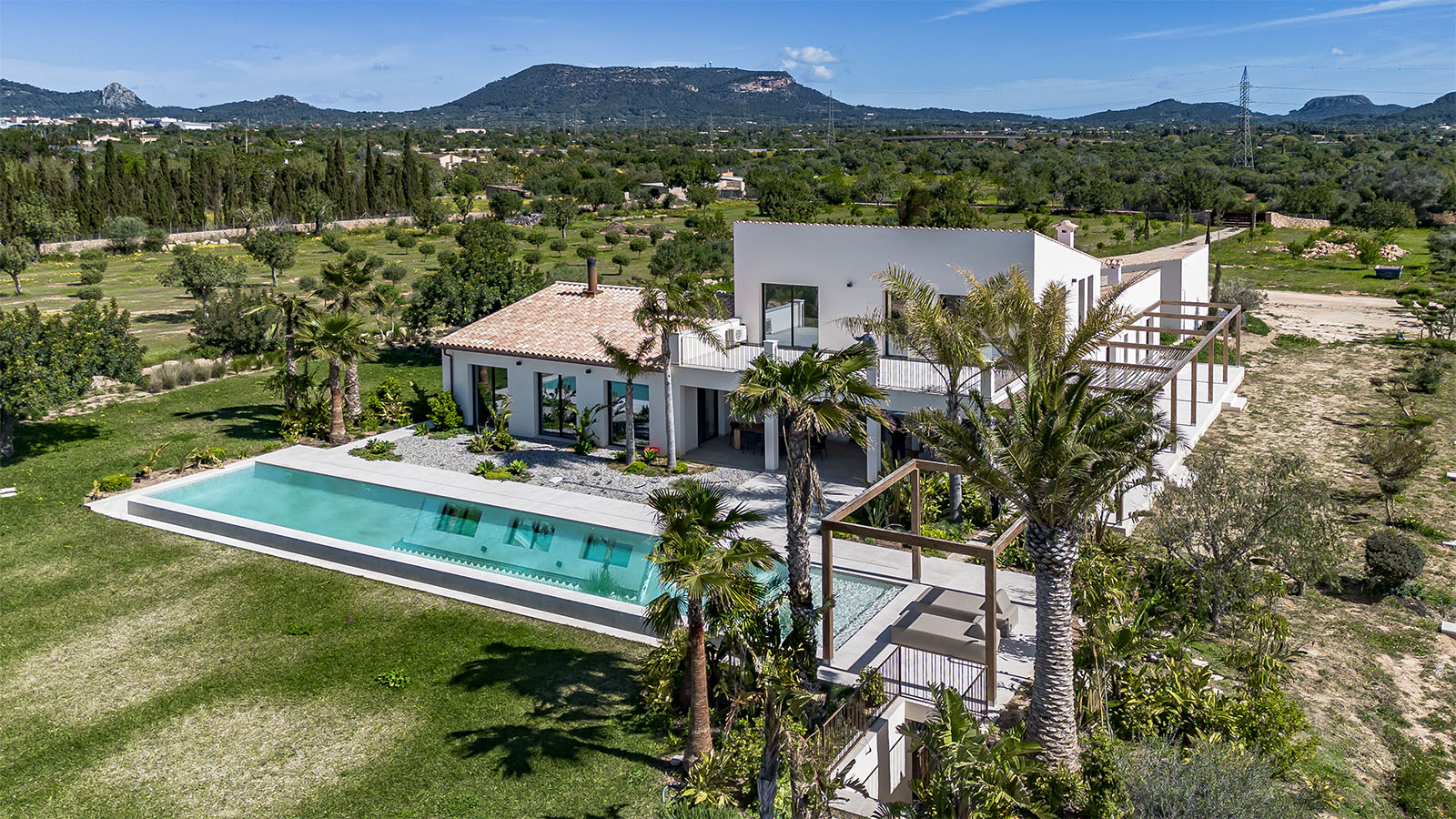 Great property with horse facilities for sale in Llucmajor, on the south coast of Mallorca. The spacious house is spread over 2 floors as follows: The 1st floor as a bright entrance hall leading to a spacious living and dining area, fully equipped kitchen, and utility room. This level also includes 2 bedrooms, one bathroom, a guest WC, and a separate office. From here, there is direct access to the covered terrace, pool area with lounge space, and a beautifully landscaped garden. The upper floor has a private master suite featuring an en suite bathroom and its own terrace.