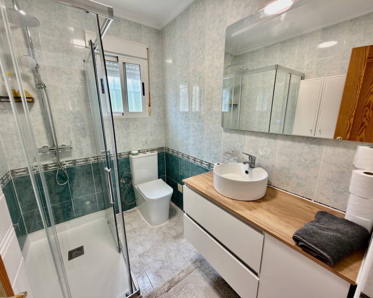 All three bedrooms include fitted wardrobes, while the two bathrooms are well-appointed and ready to enjoy. The property also benefits from air conditioning and ceiling fans, ensuring year-round comfort.