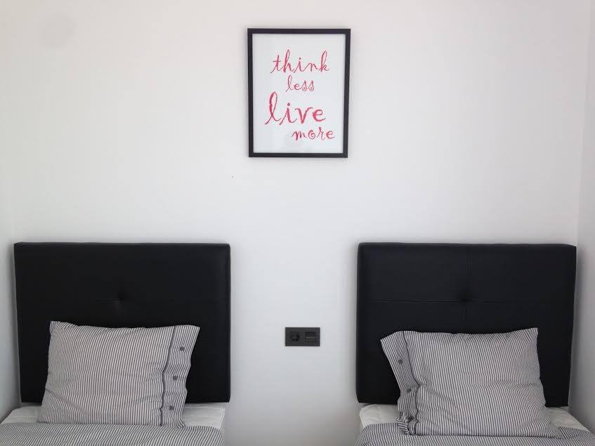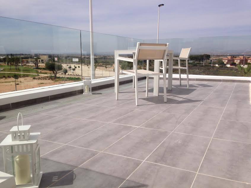 Upstairs, the master bedroom offers an en-suite shower room, fitted wardrobes and access to a private terrace with glass balustrades. The additional bedrooms share a family bathroom and also benefit from terrace access.